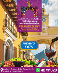 Disfruta del Carnaval Canario 2026, un “Festival de Vino y Gastronomía Española en Antigua Guatemala”