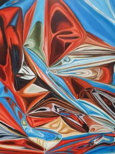 “Con esta propuesta quiero identificar el espíritu de nuestro tiempo. Continuamente nos desintegramos en datos digitales. El mundo virtual suple al mundo real cada vez que abrimos esas ventanas de luz para ver compulsivamente imágenes que nos intoxican. Estos reflejos son el ícono del selfi. Todo se transforma en datos para las redes. La vanidad es lo que hace el reflejo atractivo, sin darnos cuenta nos sonsacan un “me gusta”. En un instante nos perdemos en un narcisismo cósmico. Mis obras pretenden ser una analogía estética de esta percepción, en la que simulamos todos una doble vida”. Expresó Katia Miranda
