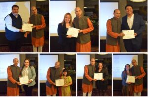 Lo más destacado del acto fue el discurso del Embajador Dr. Manoj Kumar Mohapatra, en el que destacó la importancia del hindi como fuerza unificadora en una nación tan diversa como la India. Leyó el mensaje del Honorable Ministro del Interior de la India pronunciado con ocasión del Hindi Diwas. Subrayó que debería fomentarse la promoción y el uso práctico del hindi en el trabajo oficial. Si bien reconoció que el uso extensivo del hindi en una Misión extranjera podría suponer un reto, hizo hincapié en la importancia de utilizar el idioma en las tareas administrativas. El Embajador Mohapatra animó a los invitados guatemaltecos a explorar la lengua hindi, destacando los beneficios de ser multilingüe. Les garantizó asistencia, desde la puesta en marcha de clases de hindi hasta el suministro de libros en hindi para su lectura. Expresó su esperanza de que más personas participen activamente en los diversos concursos organizados durante el Hindi Diwas para promover la lengua hindi. Se concedieron premios a los ganadores de las distintas categorías, lo que puso de manifiesto el creciente interés y dominio del hindi en Guatemala.