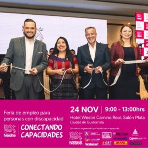 Con el objetivo de seguir impulsando espacios que promuevan oportunidades laborales dignas y accesibles, Nestlé realizará por segundo año consecutivo la feria de empleo “Conectando Capacidades”, un encuentro enfocado en acompañar a personas con discapacidad en su proceso de búsqueda de empleo. La actividad se realizará el lunes 24 de noviembre, de 9:00 a 13:00 horas, en el Hotel Westin Camino Real, Salón Jade, en Ciudad de Guatemala.
